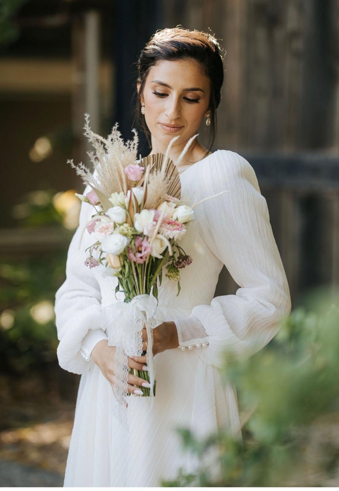 זר כלה שזור פרחים טבעיים בשילוב פרחים יבשים