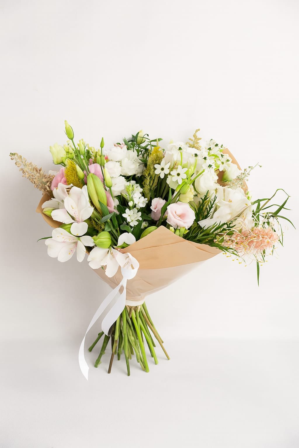 זר קלאסי שפוגש נגיעות של צבע ופרחים עדינים.